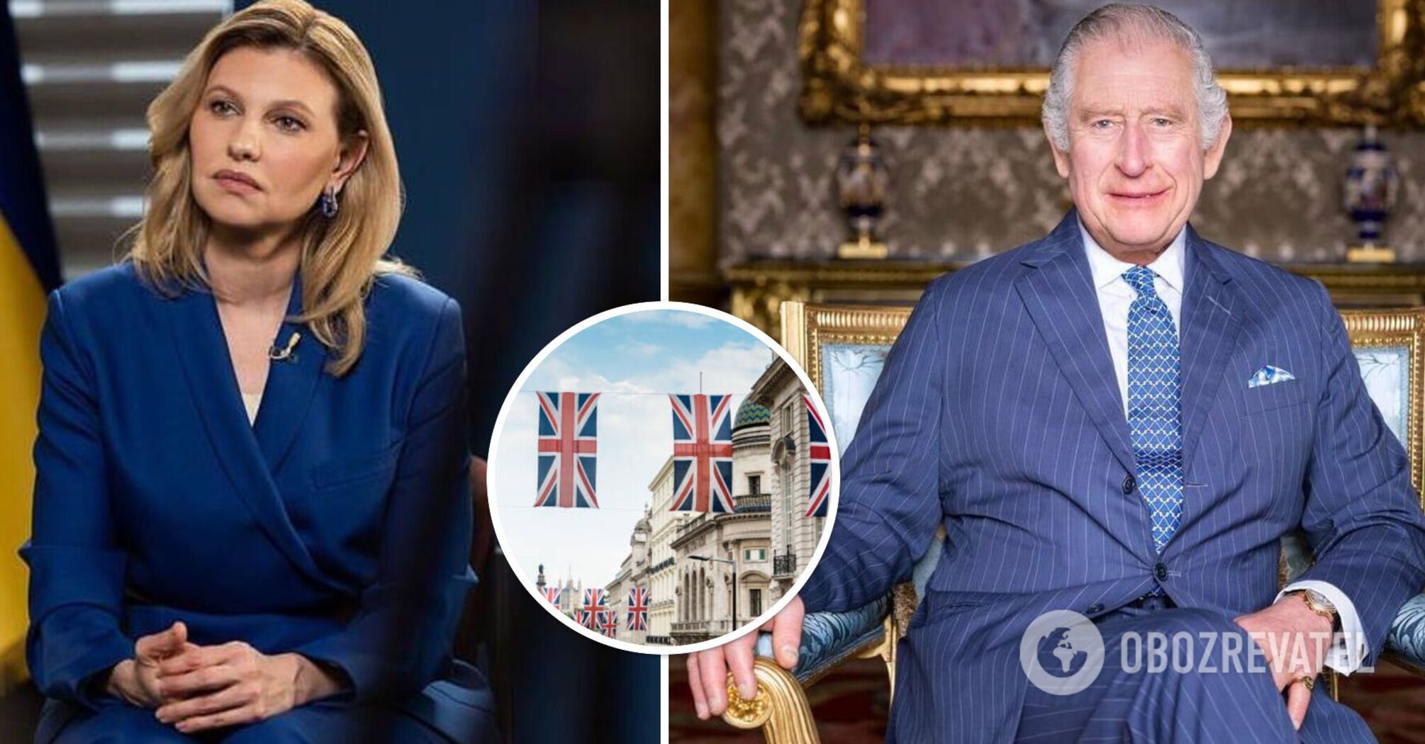 Ołena Zeleńskaya wystąpiła w czarnym garniturze ukraińskiej marki, z makijażem w kolorach nude i broszką od Rusłana Bagińskiego. Włosy miała starannie ułożone, a wizerunek uzupełniła złotą biżuterią. Na zdjęciu pierwsza dama i monarcha są do siebie uśmiechnięci i przyjaźnie nastawieni.