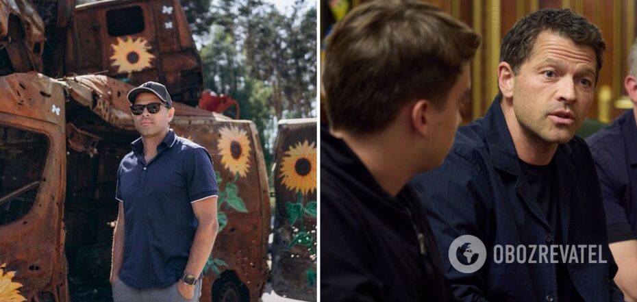 "Słoneczniki są symbolem nadziei": Misha Collins pojawił się przed spaloną maszynerią i "wpadł" na Rosjan. fot.