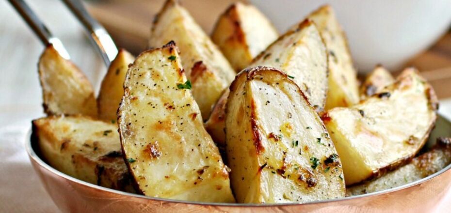 4. Umieść ziemniaki w formie wyłożonej pergaminem. Piec w piekarniku nagrzanym do 250 stopni Celsjusza przez 10-15 minut. Po tym czasie piec w temperaturze 180 stopni przez kolejne 10-15 minut.
