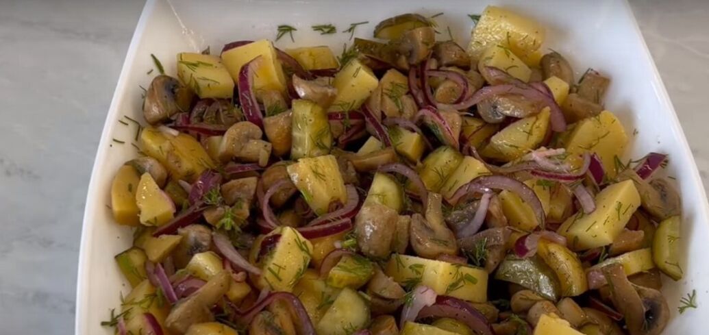 Niemiecka sałatka ziemniaczana z grzybami: przepis bez majonezu