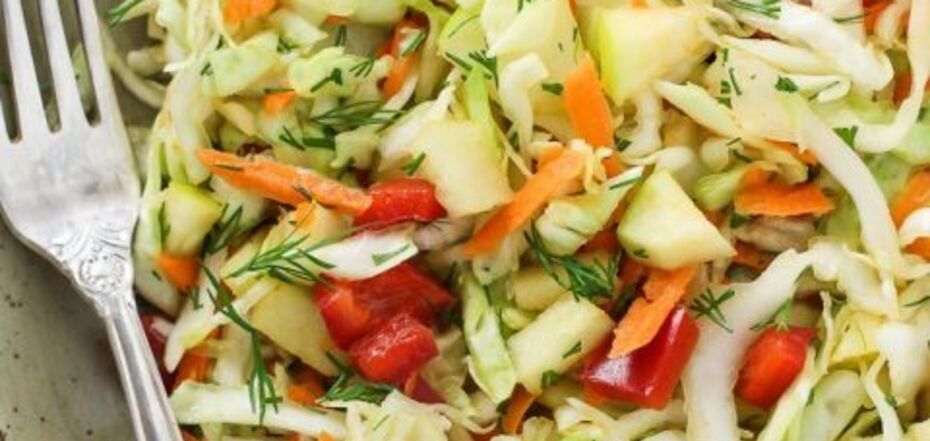 Zdrowa "jesienna" sałatka z kapusty z marchewką, cebulą i papryką: bez majonezu