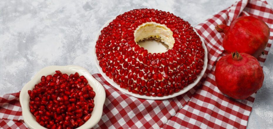 Pomysł na przygotowanie świątecznej sałatki z granatem został opublikowany na Instagramie blogerki kulinarnej Tetiany Szeremet (tania_sheremet_). Dla urozmaicenia dodaj czosnek.