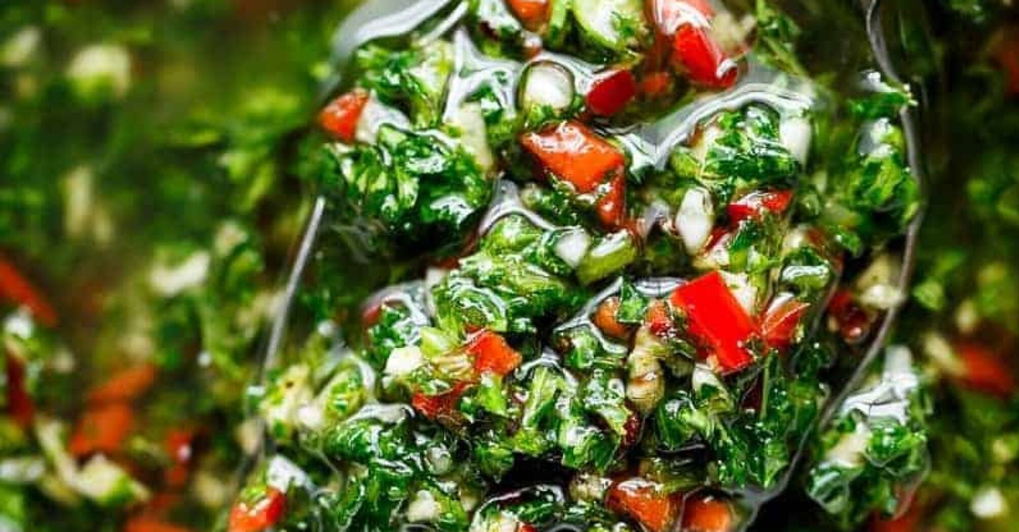 Chimichurri to pikantny sos na bazie ziół i przypraw. Gotowany jest na oleju, co czyni go bardzo uniwersalnym. Dlatego jest idealnym dodatkiem do mięs i ryb, a także bardzo efektownym dressingiem do sałatek