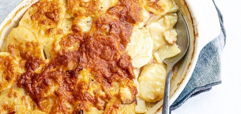 Zazwyczaj ziemniaki zapiekane są z twardym serem, który topi się podczas procesu gotowania i staje się bardzo lepki. Alternatywą może być słony ser feta. Chociaż ten rodzaj sera kruszy się sam, podczas pieczenia staje się dość jednorodny. Dlatego danie jest tak delikatne i rozpływa się w ustach.