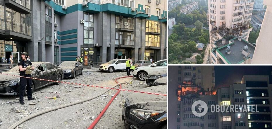 "W wyniku uderzenia gruzu w 25-piętrowy budynek w dzielnicy Solomenskyi doszło do częściowego zniszczenia konstrukcji budynku na 16, 17, 18, 19 piętrach (większość 18) budynku z pożarami w oddzielnych komórkach na piętrach. Pożar został zlokalizowany o 04:40 i ugaszony o 06:30. W wyniku ataku 11 osób odniosło obrażenia o różnym stopniu ciężkości, 3 z nich zostały hospitalizowane. Znaleziono ciała dwóch martwych osób", powiedział szef KMBA Siergiej Popko.