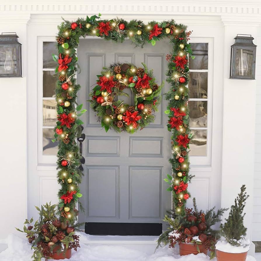 Jest to najpopularniejsza dekoracja wśród właścicieli domów, którzy wieszają wieńce ze świeżych igieł sosnowych na zewnątrz swoich drzwi. Ze względu na zimno i niską temperaturę, dekoracja ta będzie zachwycać właścicieli i innych przez długi czas.
