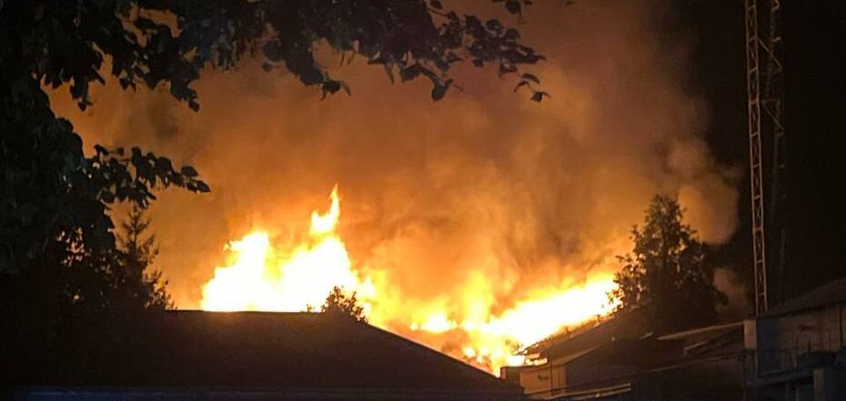 Zdjęcia i filmy z pożaru na dużą skalę pokazują, że ogień ogarnął dach budynku. Na sąsiednim budynku można zobaczyć napis "JSC NVA" - Korenovsky Plant of Low Voltage Equipment.
