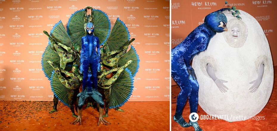 Aby zrealizować swój pomysł, Klum zwerbowała 10 innych osób. Byli to gimnastycy, którzy utworzyli ogon pawia. OBOZ.UA zebrał żywe zdjęcia supermodelki w jej tegorocznym kostiumie, a także postanowił przypomnieć najbardziej szokujące obrazy gwiazdy na przestrzeni lat (aby zobaczyć zdjęcia i filmy, przewiń do dołu strony) .
