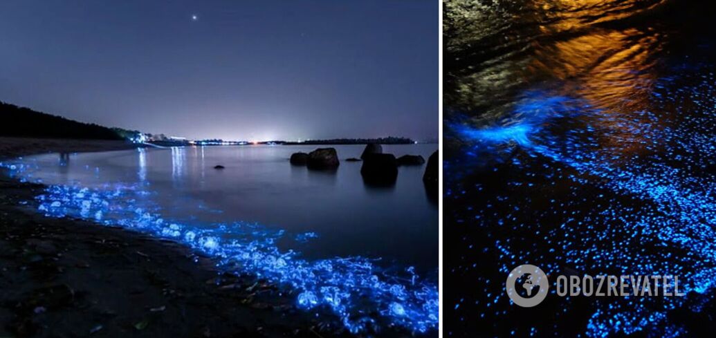Mieszkańcy publikują w Internecie piękne i nieco mistyczne nagrania, które pokazują morze świecące jasnoniebieskim światłem przy każdym ruchu wody.