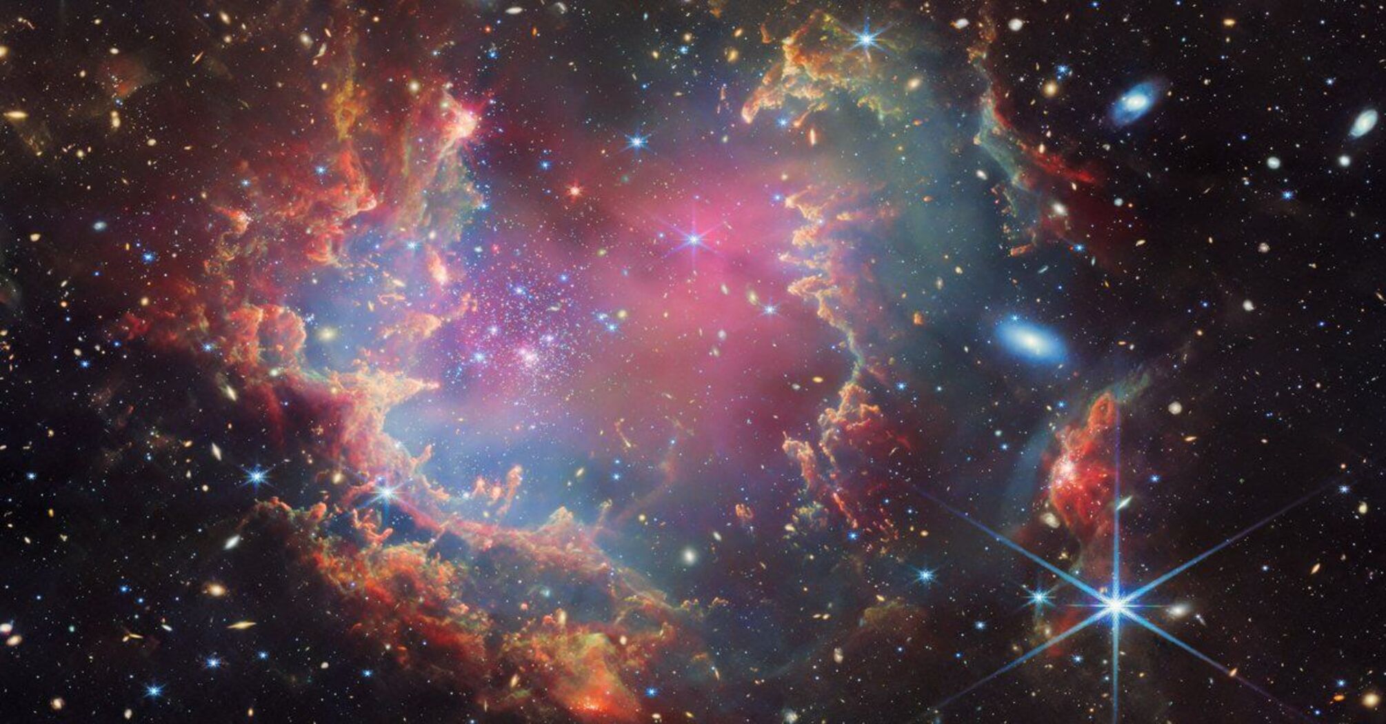 Na stronie NASA Webb w sieci X eksperci zauważyli, że jest to młoda gromada gwiazd. Można ją znaleźć w Małym Obłoku Magellana.