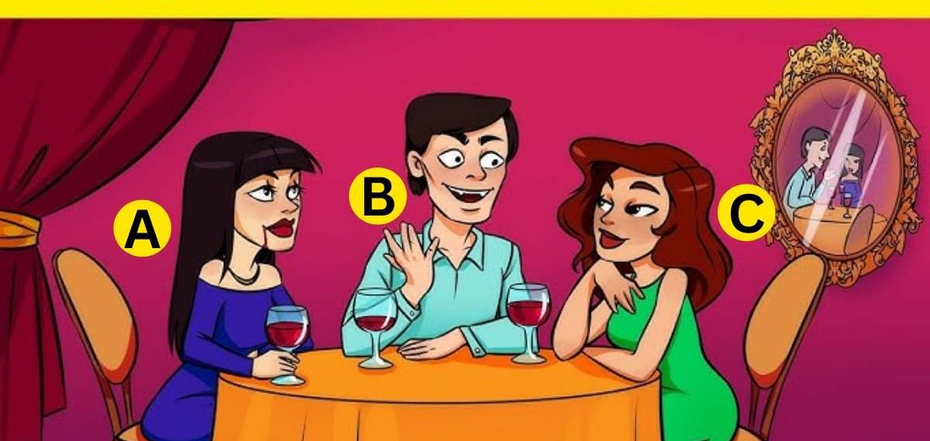 Kluczem do odpowiedzi jest lustro wiszące na ścianie. Widzimy w nim odbicie tylko dwóch osób - mężczyzny i kobiety w niebieskiej sukience. Każdy dentysta może zrobić ci wampirze zęby, a znak może być tylko makijażem, ale prawdziwy wampir nigdy nie odbija się w lustrze. I to właśnie kobiety w zielonej sukience nie widzimy w odbiciu.