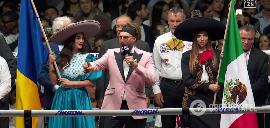 Nietypowa dla ukraińskich widzów była część ceremonialna przed walką bokserską między wszechstronnym mistrzem świata wagi super średniej Saulem Canelo Alvarezem a Brytyjczykiem Johnem Ryderem. Walka odbyła się w meksykańskiej Guadalajarze.