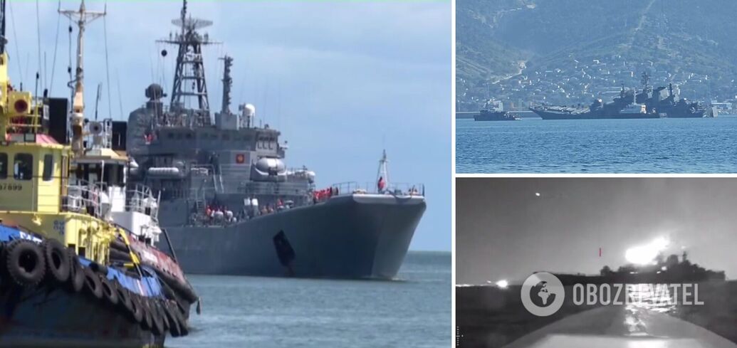 Rosyjscy okupanci próbują przyspieszyć naprawę okrętu desantowego Olenegorsk Miner. Uszkodzony statek jest zacumowany w porcie w Noworosyjsku.