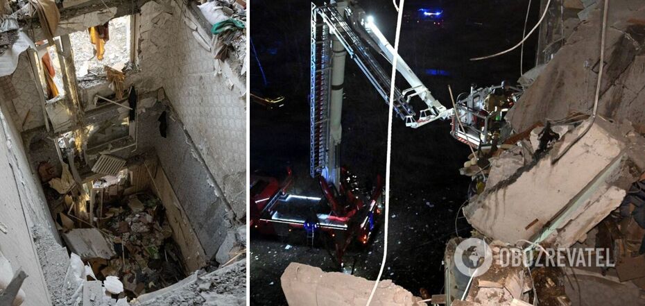 Według wstępnych danych Państwowej Służby Ratowniczej, w dziesięciopiętrowym budynku trafionym przez wrogiego drona zniszczonych zostało dziewięć mieszkań i 12 balkonów.
