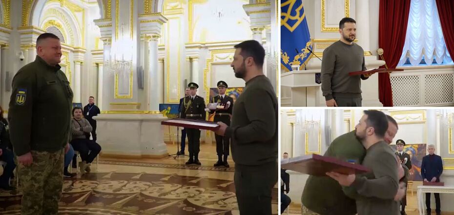 Nagranie z ceremonii zostało opublikowane przez Kancelarię Prezydenta w piątek, 9 lutego. Podczas wręczania Orderu Złotej Gwiazdy, przyznawanego Bohaterom Ukrainy, Załużny i Zełenski dwukrotnie się uściskali.
